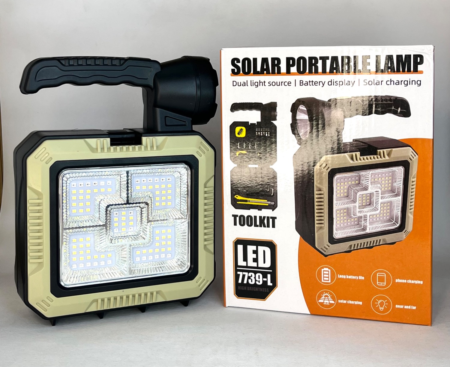 چراغ قوه سولار چند حالته و جعبه ابزار مدل LED 7739-L
