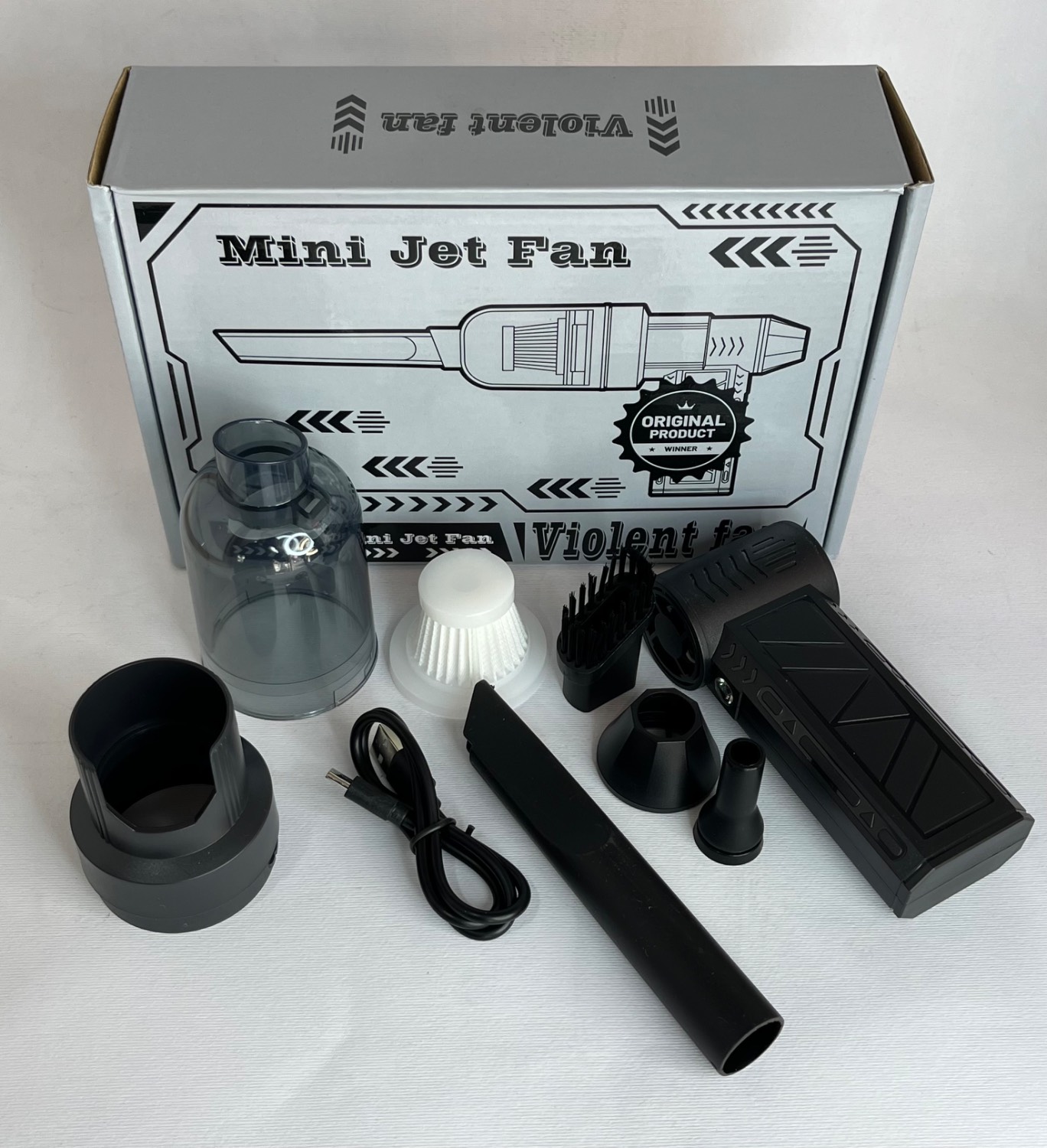 دفترچه راهنما ، کابل شارژ ، مخزن جارو ، سری های جارو و دمنده