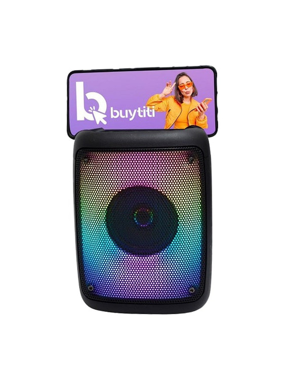 قسمت بالای اسپیکر بخشی که دسته آن قرار دارد یک هولدر برای گوشی در نظر گرفته شده است که می توانید هنگام اتصال گوشی به اسپیکر، گوشی را برروی آن قرار دهید. اگر به دنبال یک اسپیکر باکیفیت و قدرت صدای عالی هستید پیشنهاد ما به شما اسپیکر بلوتوث KTS-1578 می باشد. با ابعاد جمع و جوری که این اسپیکر دارد فضای کمی را اشغال می کند. همچنین شما می توانید به راحتی آن را جا به جا کنید و در مسافرت، مهمانی ها، حین کار و ... از شنیدن آهنگ مورد علاقه تان لذت ببرید.