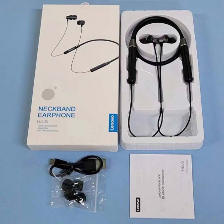 هندزفری بی سیم مدل HE05 محصولی از برند لنوو است. این هدفون به صورتی طراحی شده تا در استفاده دراز مدت گوشتان را اذیت نکند. یکی از دلایل این ویژگی وزن سبک این مدل است. برای زمانی که قصد ورزش دارید، گردنی این هندزفری کارایی بسیاری دارد. از طریق بلوتوث، این هندزفری را به گوشی هوشمندتان متصل کرده و قابلیت پخش موسیقی و مکالمه را به شما میدهد. برای این مدل بلوتوث نسخه 5.0 در نظر گرفته شده و برد بلوتوث این هدفون تا 10 متر محاسبه شده است. با استفاده از این باتری شما قادرید تا 8 ساعت از این هدفون استفاده کنید. یکی از دلایلی که این مدل را برای استفاده هنگام ورزش مناسب کرده، گواهی IPX5 است. این گواهی باعث شده تا این مدل نسبت به آب و رطوبت مقاوم باشد. این مدل به گردنی مجهز شده و این ویژگی باعث شده تا این هدفون از گوشتان نیافتد.