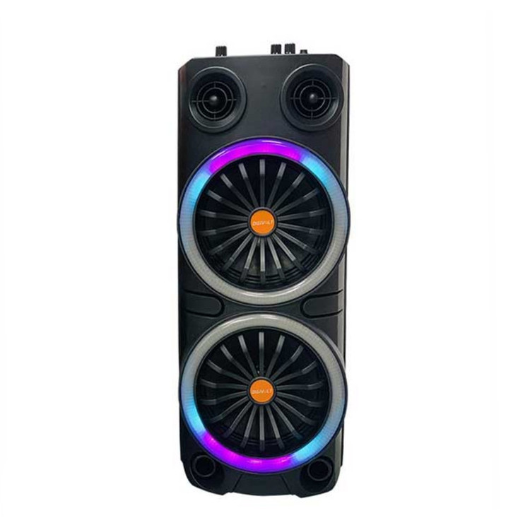 اسپیکر خانگی دیجی ولت 1118 اسپیکر خانگی دیجی ولت 1118 تقریبا بهترین اسپیکر این کمپانی است که تنظیمات زیادی برای کیفیت صدا در خود قرار داده است و شما میتوانید به راحتی با این تنظیمات کیفیت دلخواه خودتون را تجربه کنید در این اسپیکر حلقه های نور RGB تعبیه شده است که با کنترل و دکمه ها میتوانید رنگ آنهارا عوض کنید و به محیط زیبایی چند برابری ببخشید این اسپیکر از دو عدد میدرنج و دو عدد ساب ووفر تشکیل شده است که میتوانند بیس و تریبل قابل قبولی به شما اهدا کنند که در ادامه سایز باند های این محصول برای شما توضیح داده شده است . ویژگی ها و امکانات اسپیکر خانگی دیجی ولت 1118 اسپیکر خانگی دیجی ولت 1118 خفن و جذاب امکانات جذابی هم همراه خود دارد که باعث میشود شما بیشتر برای خرید این محصول اشتیاق پیدا کنید . این اسپیکر از کارت حافظه و فلش تا 128 گیگ پشتیبانی میکند که این گزینه عالیه در ضمن میتوانید به راحتی به وسیله بلوتوث به این محصول دسترسی داشته باشید و بلوتوث نسخع 5 این محصول باعث میشود که آهنگ ها به سرعت خوبی به اسپیکر برسند و شما حتی چند صدم ثانیه تاخیر نداشته باشید . نور های کار شده در این اسپیکر فوق العادس به قدری ترکیب رنگ جذاب و با کیفیتی در این محصول به کار رفته شده است که در شب به منزل و فضای شما حس زیبایی القا کند در ضمن شما با یک دکمه میتوانید رنگ هارا عوض کنید و اگر مورد پسند شما نبود میتوانید خاموش کنید . در این محصول میکروفونی تهیه شده است که شما میتوانید هماهنگ با آهنگ ها خوانندگی کنید و کلی لحضات خوب بسازید در قسمت پشت این اسپیکر فضایی وجود دارد که شما میتوانید در صورت نیاز نداشتن به میکروفون در جای مخصوص خود قرار دهید و این کار جلوگیری میکنید از گمشدگی میکروفون و میکروفون شما همیشه کنار شما است .
