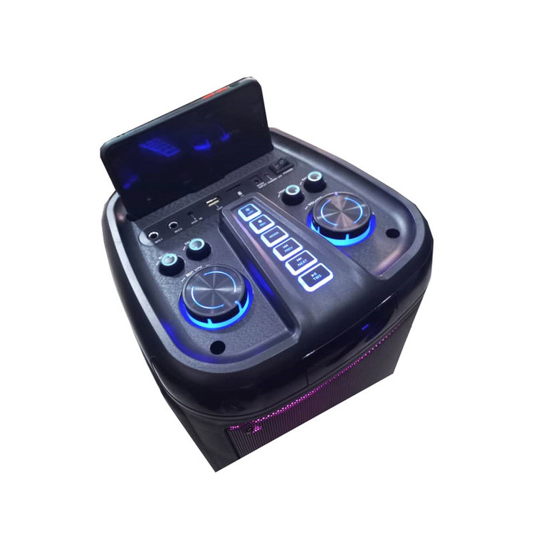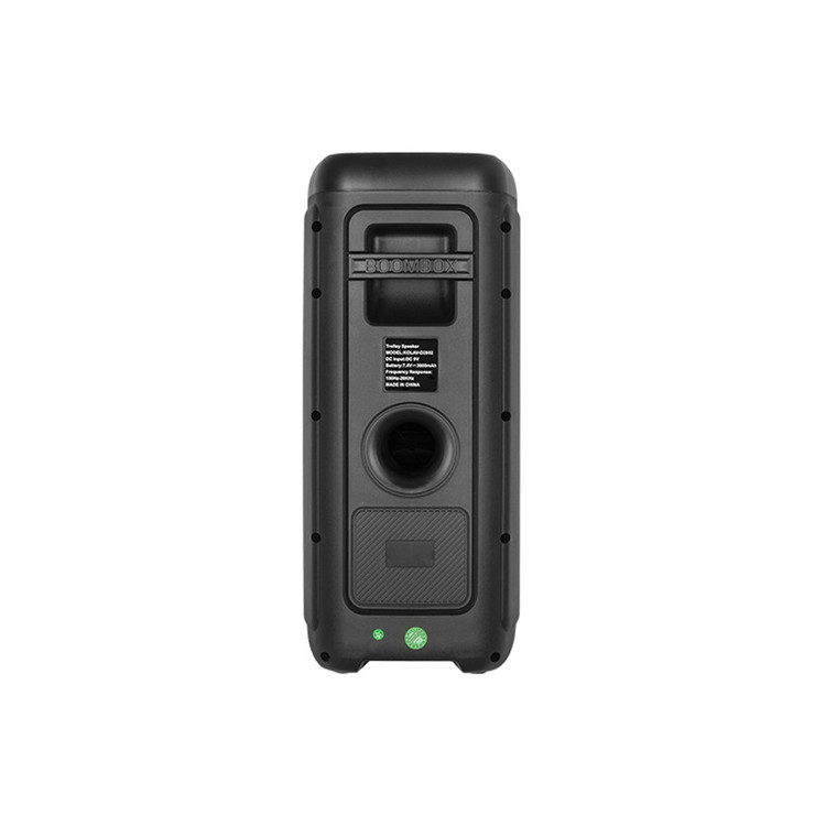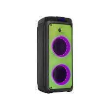 اسپیکر بلوتوثی قابل حمل D-2802، از دو ساب ۸ اینچی همراه با LED های جذاب دور ساب تشکیل شده است.