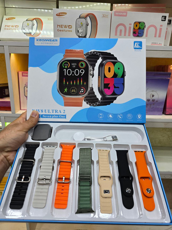 ساعت هوشمند مدل KW 8 ULTRA 2 یک ساعت هوشمند و مدرن است که به شما امکان میدهد با تمام ویژگیهای جذابش به راحتی در محل کار، ورزش و حتی مواقع رسمی، خوش تیپ و شیک باشید.این ساعت هوشمند دارای قابلیتهای فراوانی است. با قابلیت مکالمه (از طریق اتصال به بلوتوث) و پخش موسیقی، شما میتوانید از تماس با دوستان و موسیقیهای مورد علاقهتان لذت ببرید. اما قابلیت برجستهتر این ساعت هوشمند، سنسورهای سلامتی فراوانی است که دارد. با پایش ضربان قلب، فشار خون، اکسیژن خون و…، این ساعت به شما کمک میکند تا سلامتی خود را بررسی کرده.ساعت هوشمند مدل KW 8 ULTRA 2 با داشتن شش بند اضافی با رنگهای مختلف،امکان انطباق با سلیقه و نیازهای مختلف کاربران را فراهم میکند.