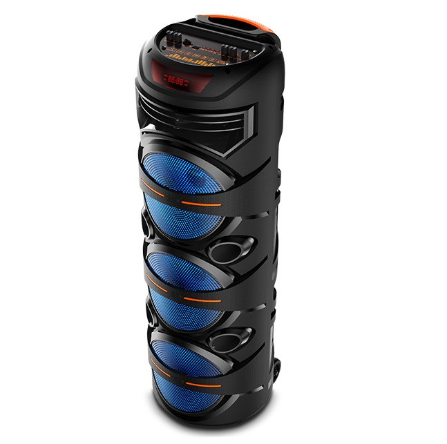 8302 یک اسپیکر با دو بلندگوی 8 اینچی و یک تیوتر یک اینچی میباشد که قادر به صدایی بسیار بلند و با کیفیت با حجم 4000 هزار وات اسمی می باشد.طراحی ظاهری این اسپیکر بسیار زیبا و ارگونمی می باشد که به راحتی قابلیت حمل و جابجایی را دارد.باتری درون این اسپیکر از ظرفیت بسیار بالای 4500 میلی آمپر برخوردار است که توانایی روشن نگه داشتن این اسپیکر را به مدت حداکثر 6 ساعت دارد.در قسمت فوقانی این محصول پنل کنترل کننده بسیار حرفه ای دیده می شود.همچنین در قسمت پشتی این محصول جایگاهی تعبیه شده که میتوانید با قرار دادن میکروفن بیسیم در آن از گم شدن یا اسیب دیدن میکروفن جلوگیری کنید.رقص نور این محصول نیز دارای قابلیت تغییر و خاموش کردن می باشد.نکته قابل توجه این اسپیکر میکروفون بیسم شارژی این محصول میباشد که کارکرد بهتری نسبت به مدل های باتری خور دارد.کل 8302یکی از بهترین گزینه ها ی خرید برای انتخاب یک اسپیکر برای داخل و خارج از منزل می باشد.
