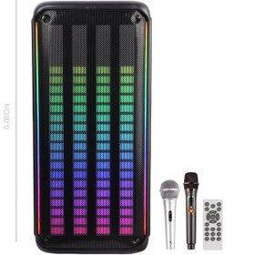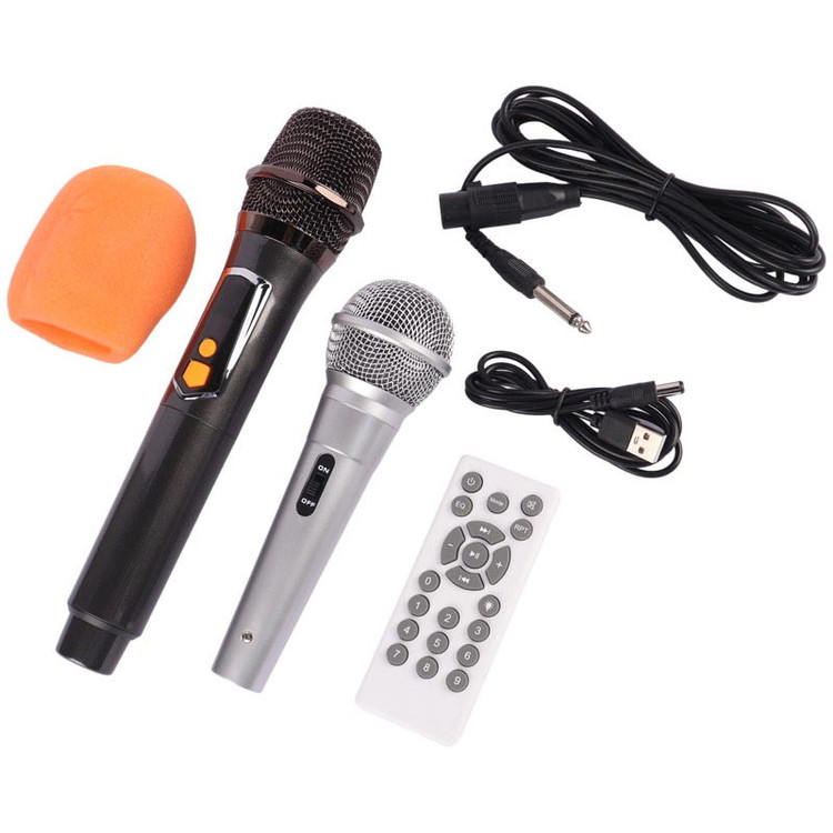 اقلام همراه بلندگو: دو عدد میکروفون ، ریموت کنترل ، کابل شارژ