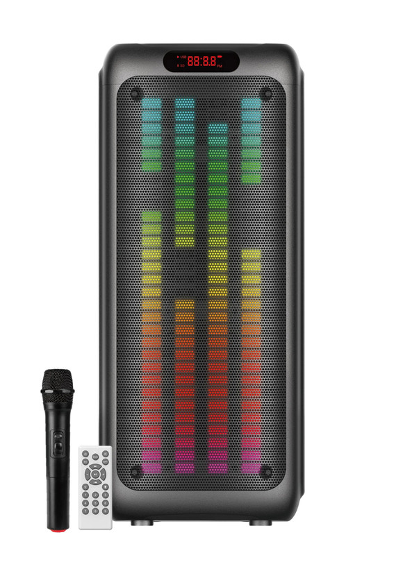 اسپیکر قابل حملkts 1756یک اسپیکر جمع و جور ولی با صدایی فوق العاده بلند و با کیفیت است که می تواند صدایی با قدرت 5000وات پمپو را تولید کند.این اسپیکر از بلوتوث ورژن 5 پشتیبانی کرده و دارای درگاه فلش ، مموری و ای یو ایکس می باشد.این اسپیکر دارای پارتی لایت بسیار زیبا و حساس به صدا است که می توانید آن را به چند حالت مختلف تغییر دهید همچنین بر روی پنل این اسپیکر کلیدی مجزا به اسم BASS تعبیه شده که با روشن کردن آن باس دستگاه چند برابر خواهد شد.داخل باکس این اسپیکر یک عدد میکروفن با سیم قرار دارد که می توانید توسط آن لحظات مفرحی رو به خوانندگی و شنیدن موسیقی بپردازید.