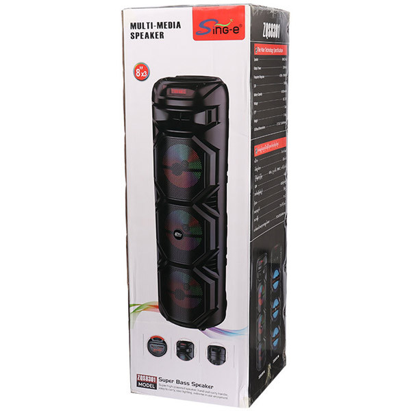 اسپیکر جدید سه ساب(سه باند) ZQS 8301 محصول جدید از شرکت ZQS که در ایران علاقمندان زیادی دارد این اسپیکر زیبا و باکیفیت دارای سه باند 8 اینچ است که همین امر باعث شده پرتاب صدای خوبی نسبت به اسپیکرهای 2 باند داشته باشد. طراحی شیک و زیبا با چرخهای روان باعث شده که شما بتوانید به راحتی آن را حمل کنید. یکی از مهمترین ویژگیهای این محصول جدید که داری میکروفون وایرلس(بیسیم) قابل شارژ با پورت TPC است که جدیدا اسپیکرهای شرکت zqs این قابلیت را اضافه کرده است. ریموت کنترل، کابل شارژ TPC, باطری 4500 میلیآمپر ساعت، توان خروجی 60 وات، اتصال کارت حافظه، USB.AUX و بلوتوث. این ویژگیها باعث شده که این محصول صدای باکیفیت،قیمت مناسب،جمع و جور،بیس نرم، برای شرکت در مجالس شادی و دورهمی خانوادگی شما عزیزان باشد.