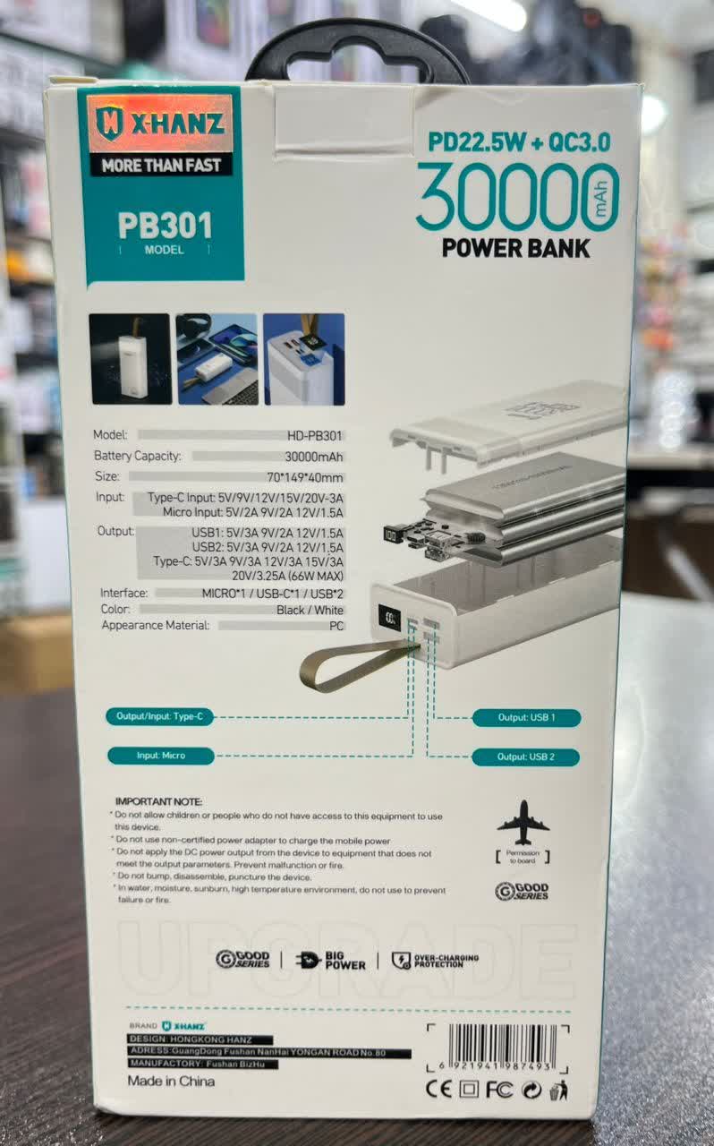 پاوربانک 30000 میلی آمپر Xhanz PB301
