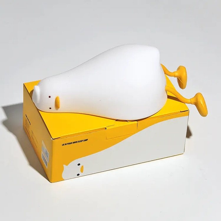 چراغ خواب سیلیکونی با طراحی یک جوجه اردک سفید زیبای دراز کشیده، یک چراغ جذاب و دوست داشتنی برای اتاق کودکتان است و میتواند فضایی آرامش بخش را برای دلبندتان مهیا کند. این چراغ شب LED ساختاری بسیار مقاوم از پلاستیک ABS و سیلیکون دارد و در کنار سخت بودن، بدنه از نرمی و لطافت بالایی برخوردار است و با پوست هم سازگاری دارد. ابعادی برابر با 210x103x62 میلیمتر دارد و وزن آن 160 گرم است.