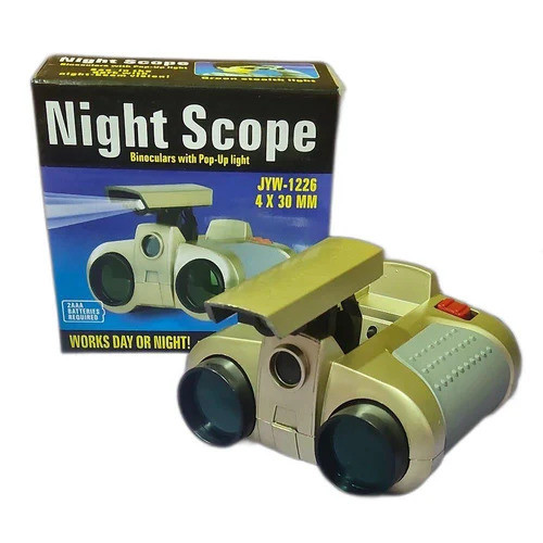 دوربین دید در شب اسباب بازی شامل یک دوربین اسباب بازی دوچشمی می باشد که دارای لنز سبز رنگ است که قابلیت های ویژه ای دارد. با این اسباب بازی کودک می تواند در روز تا ۴ برابر بزرگنمایی کند تا تصاویر واضحتر باشد. از امکانات این دوربین دید در شب می باشد که از ویژگی های خاص این اسباب بازی است.